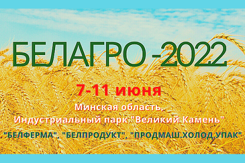 Международные специализированные выставки «Белагро», «Белферма», «Белпродукт», «Продмаш. Холод. Упак» пройдут в Минске (Республика Беларусь) в рамках Белорусской агропромышленной недели с 7 по 11 июня 2022 года. Ознакомиться с передовыми направлениями в развитии растениеводства, животноводства и птицеводства, современными технологиями переработки сельскохозяйственной продукции, упаковки и хранения продукции, а также разнообразием сельхозтехники можно будет на новой площадке в выставочном центре Китайско-Белорусского индустриального парка «Великий Камень», расположенном в 25 км от Минска и 6 км от Национального аэропорта (Смолевичский район, пр. Пекинский, 29).